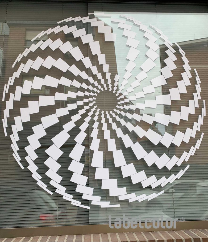Un ejemplo de las distintas posibilidades que se pueden hacer con este tipo de vinilos es el ejemplo que nos ocupa, una espiral de dos metros que al pasar frente a ella te llama la atención.
